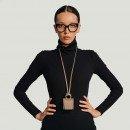 - На длинном ремешке на шее в качестве кожаного функционального украшения