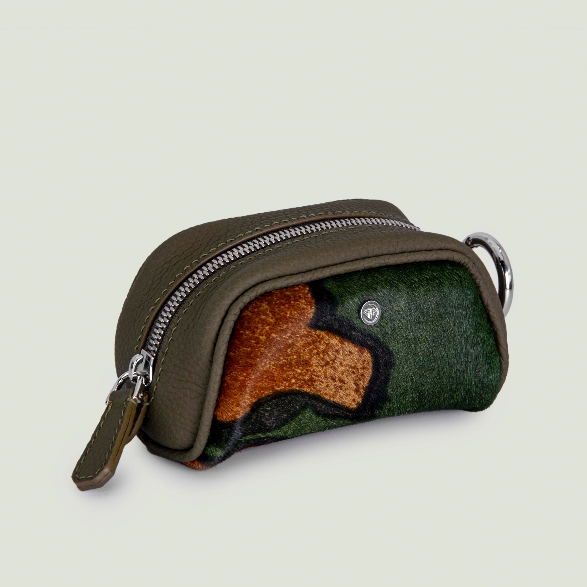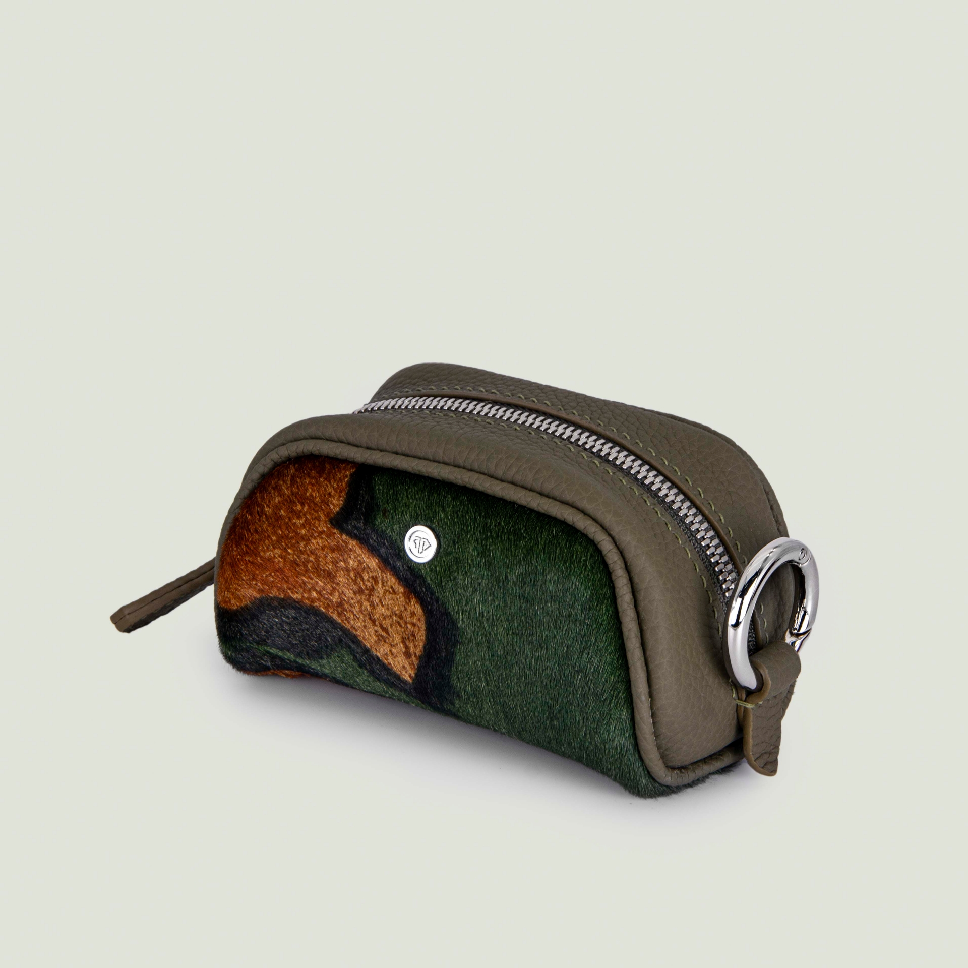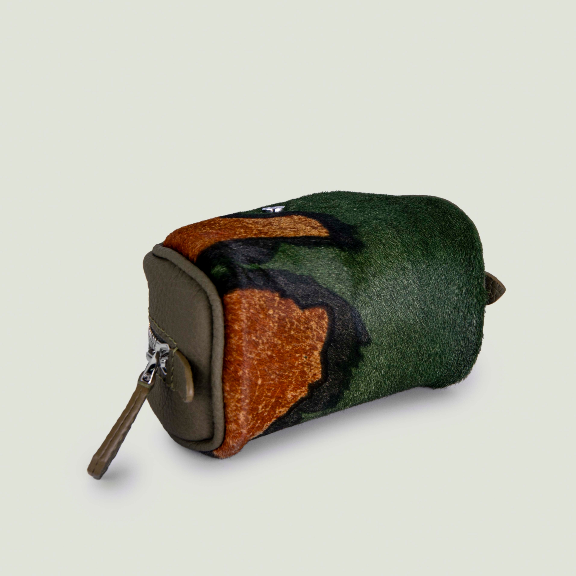– Натуральный мех "пони" зеленого цвета с анималистичным принтом