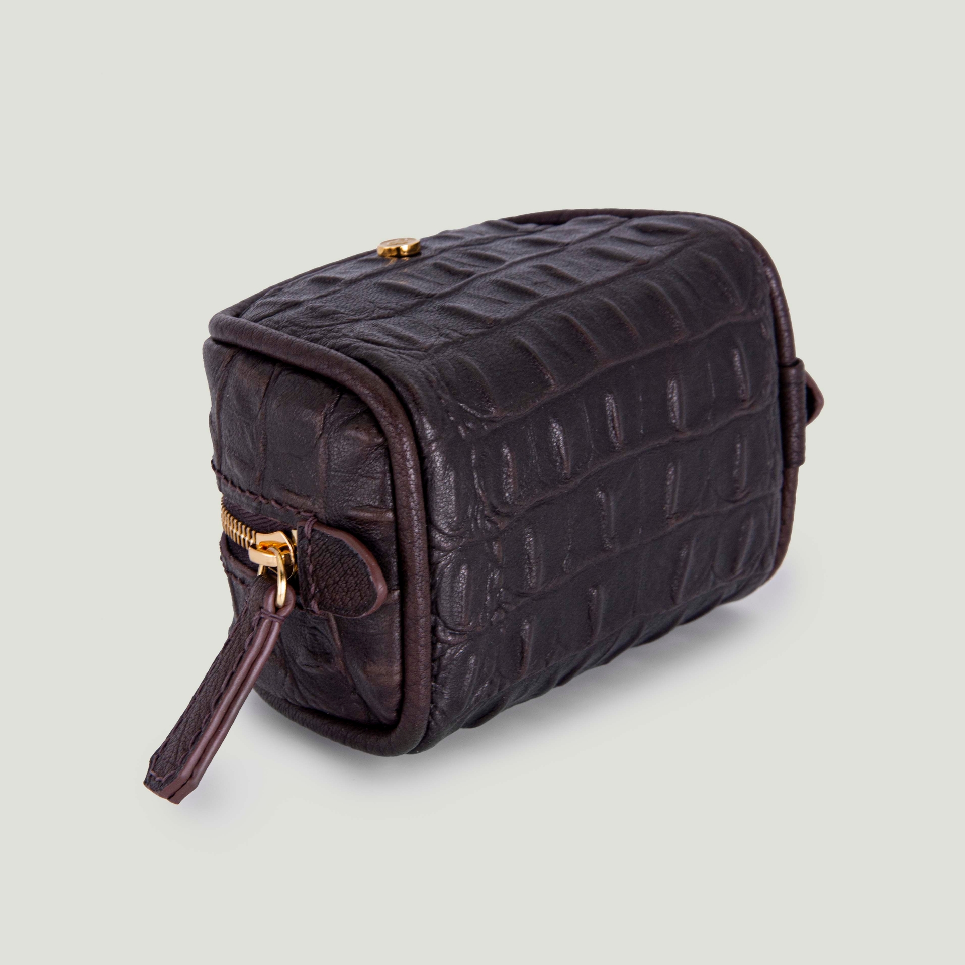 – Натуральная кожа шоколадного цвета с фактурой крокодила