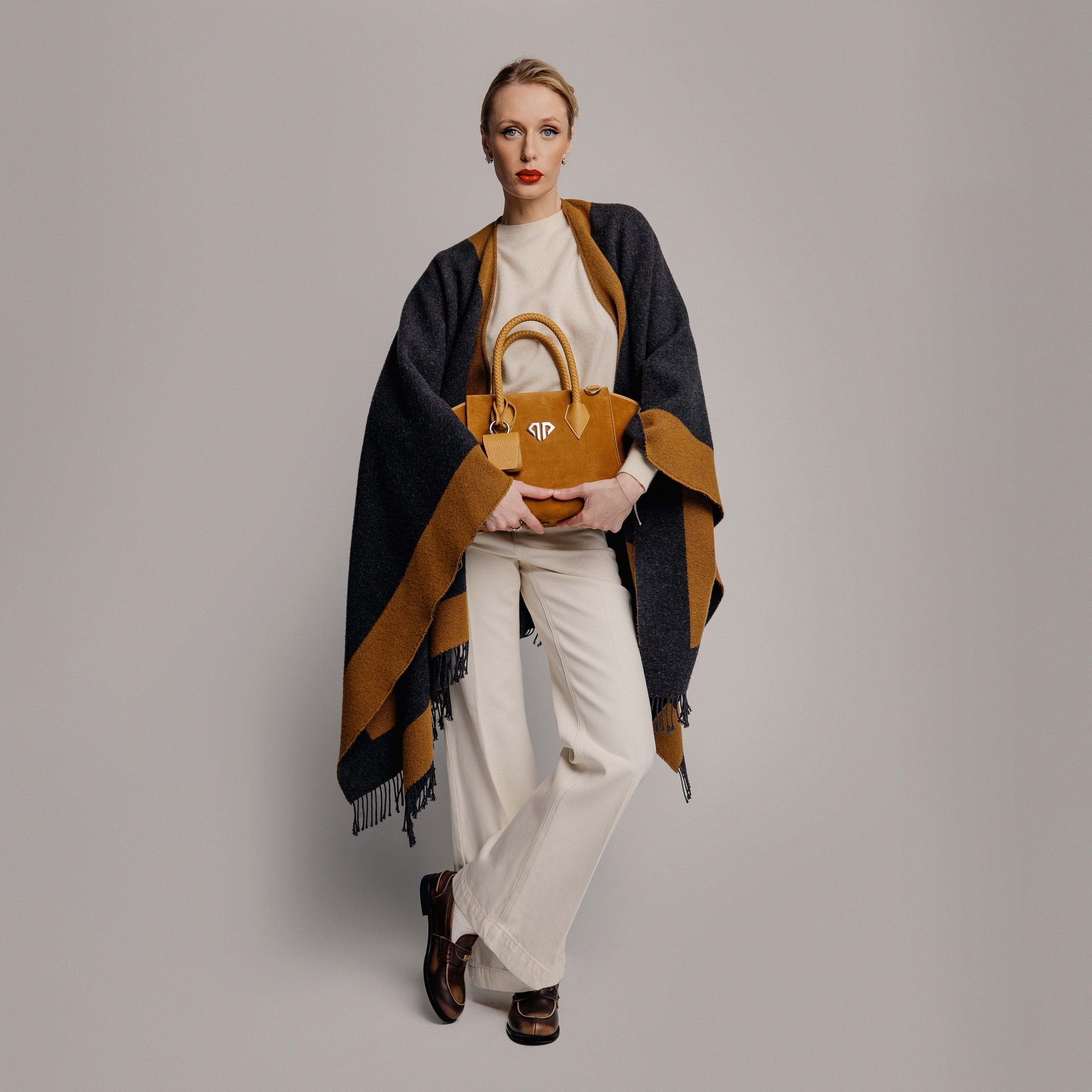 – Комбинация натуральной замши и кожи горчичного цвета