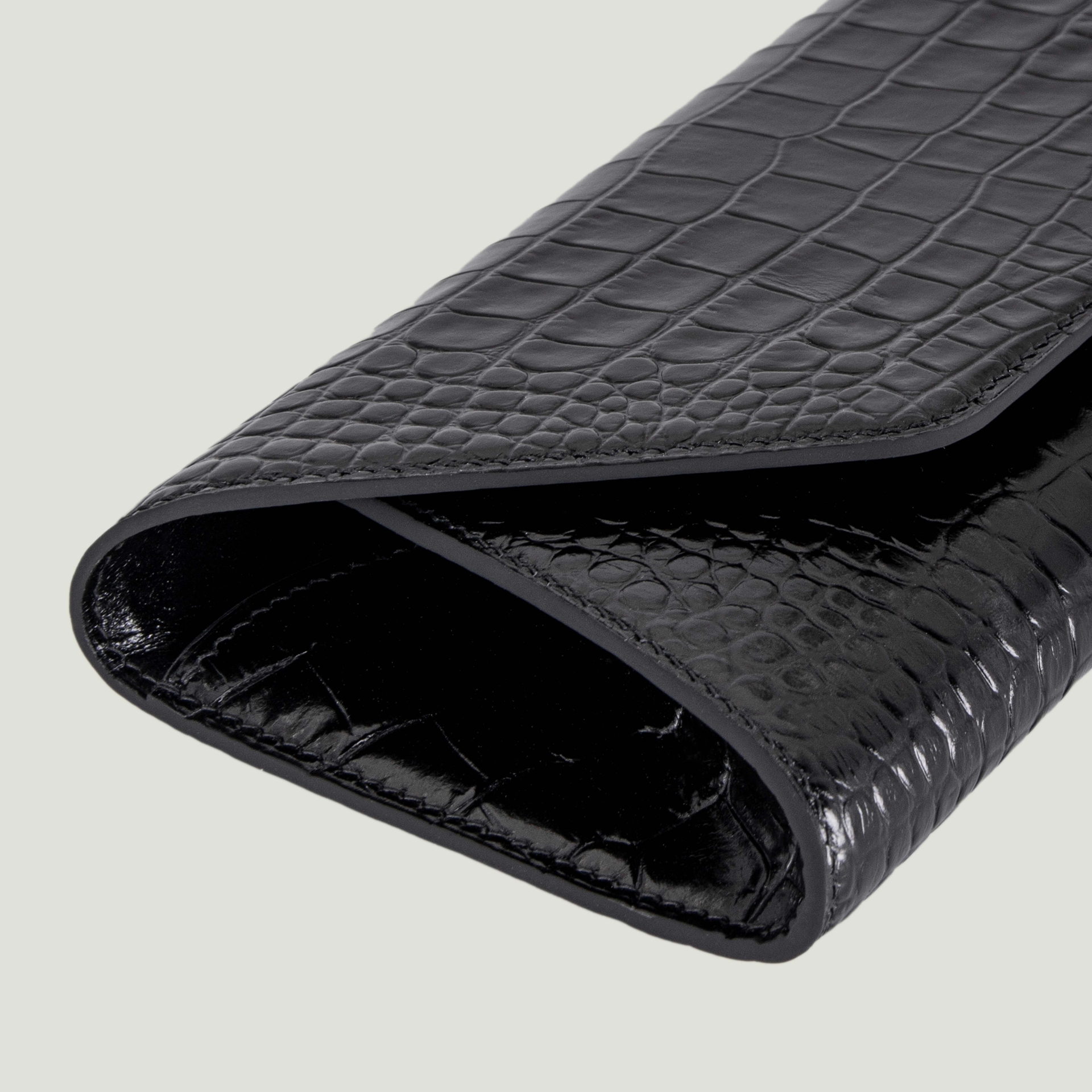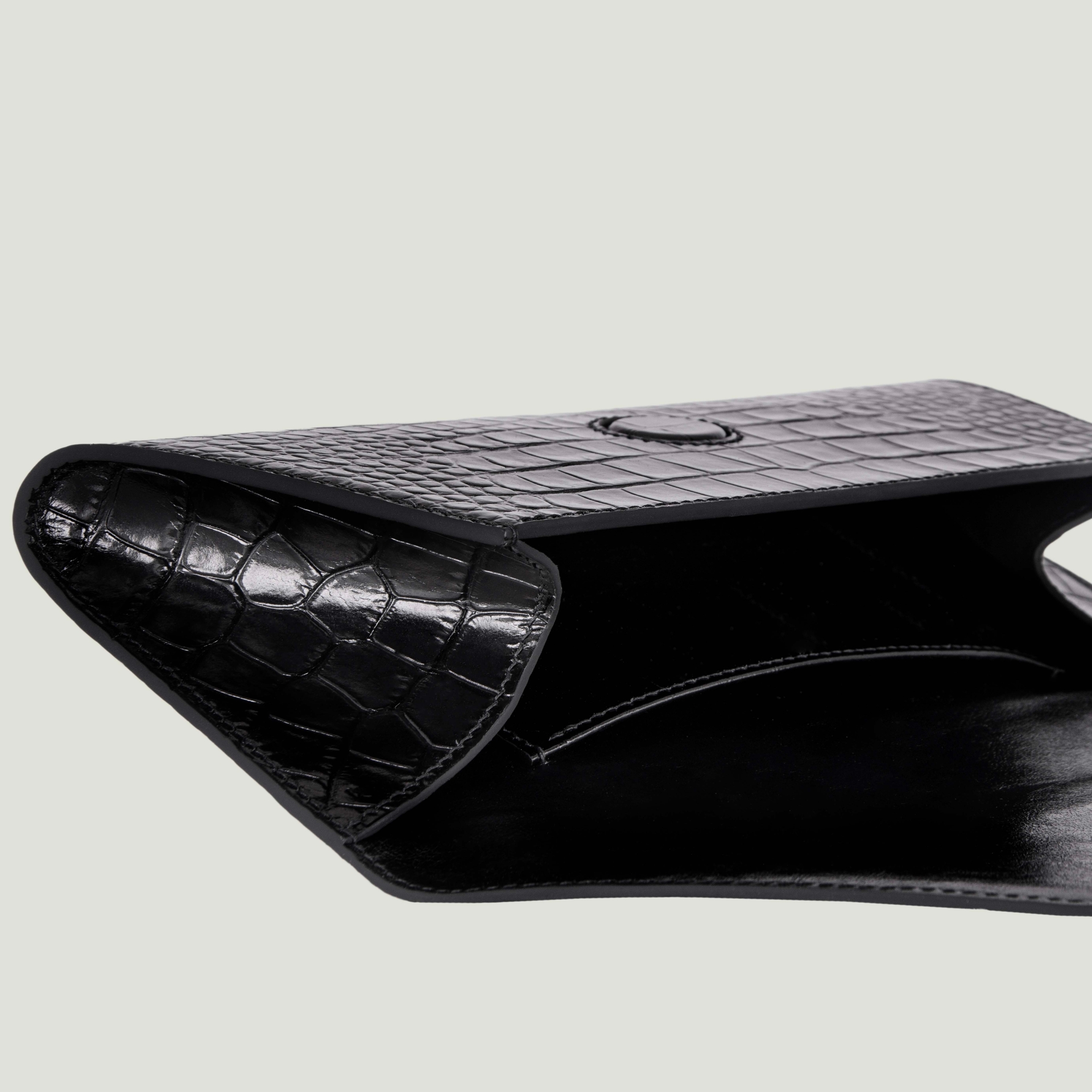 - Натуральная лаковая кожа черного цвета с фактурой кроко