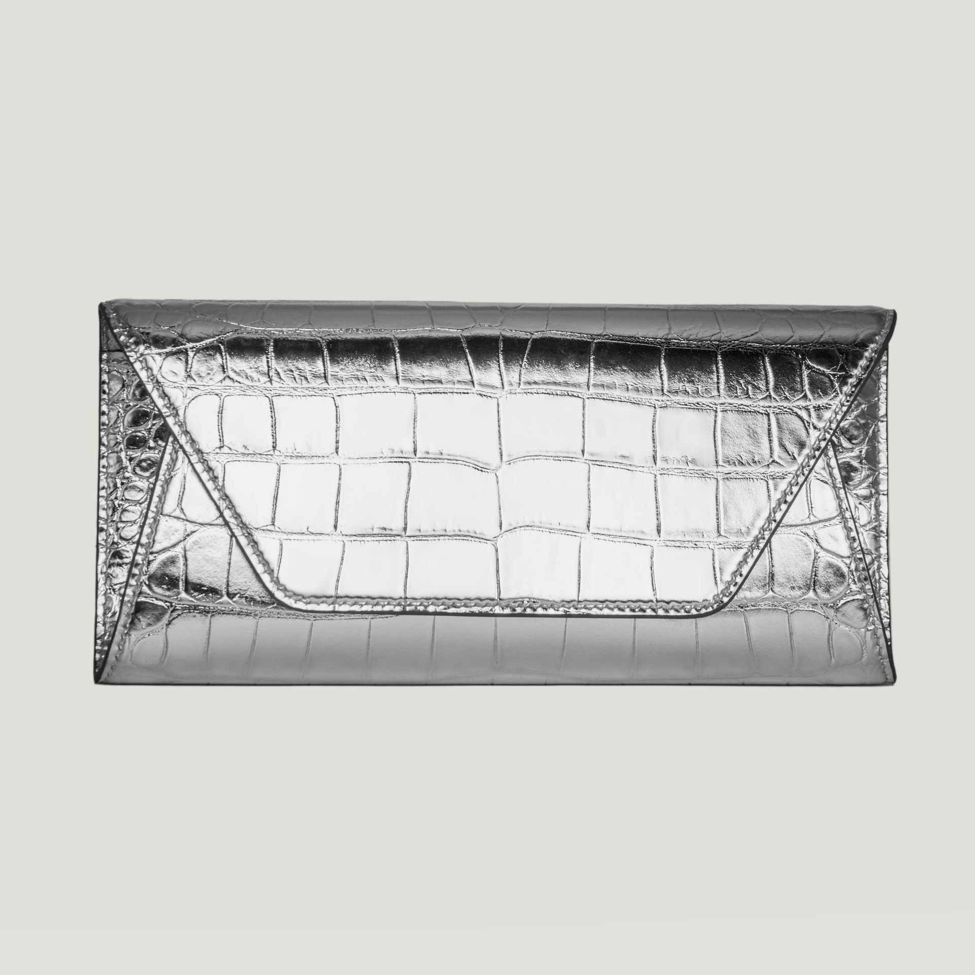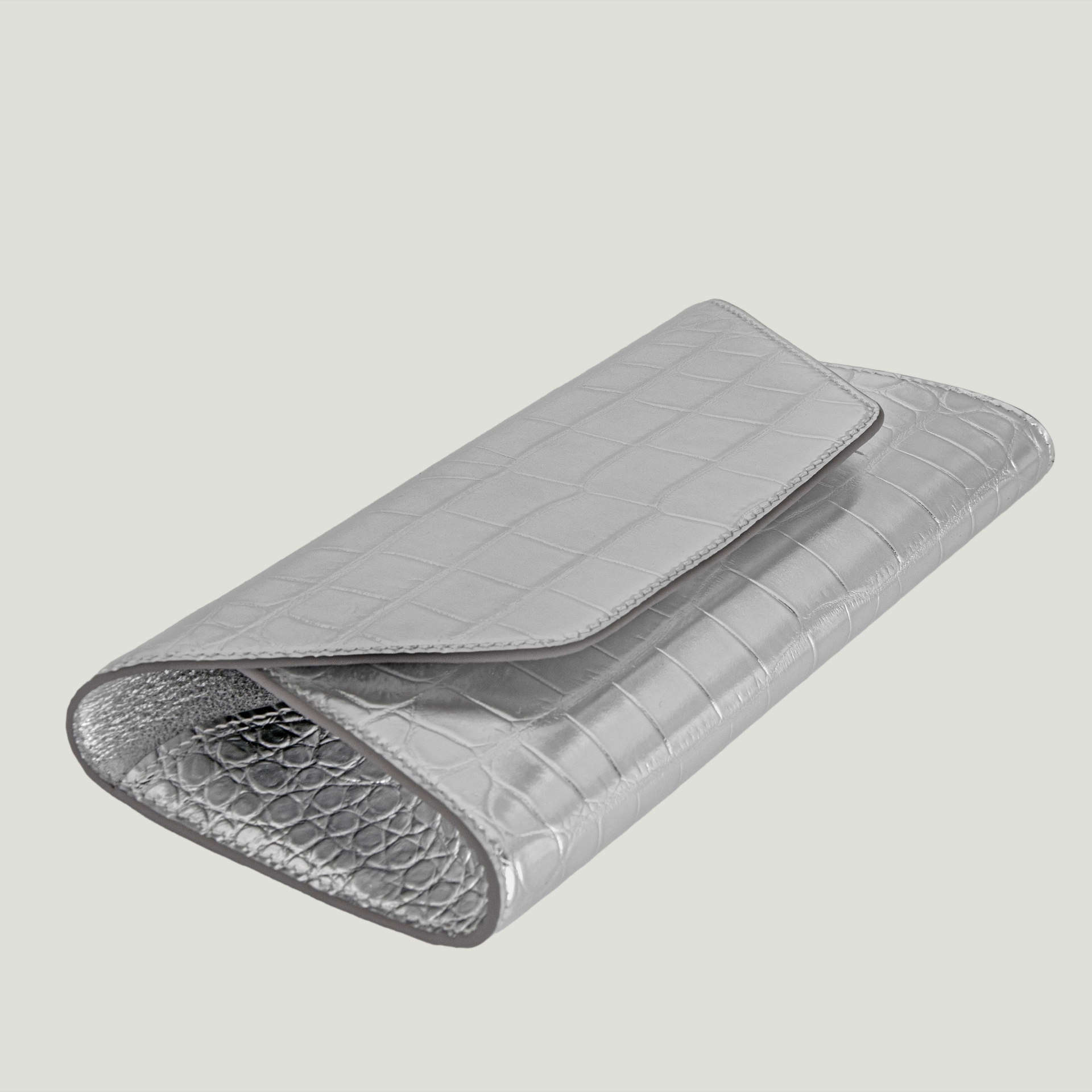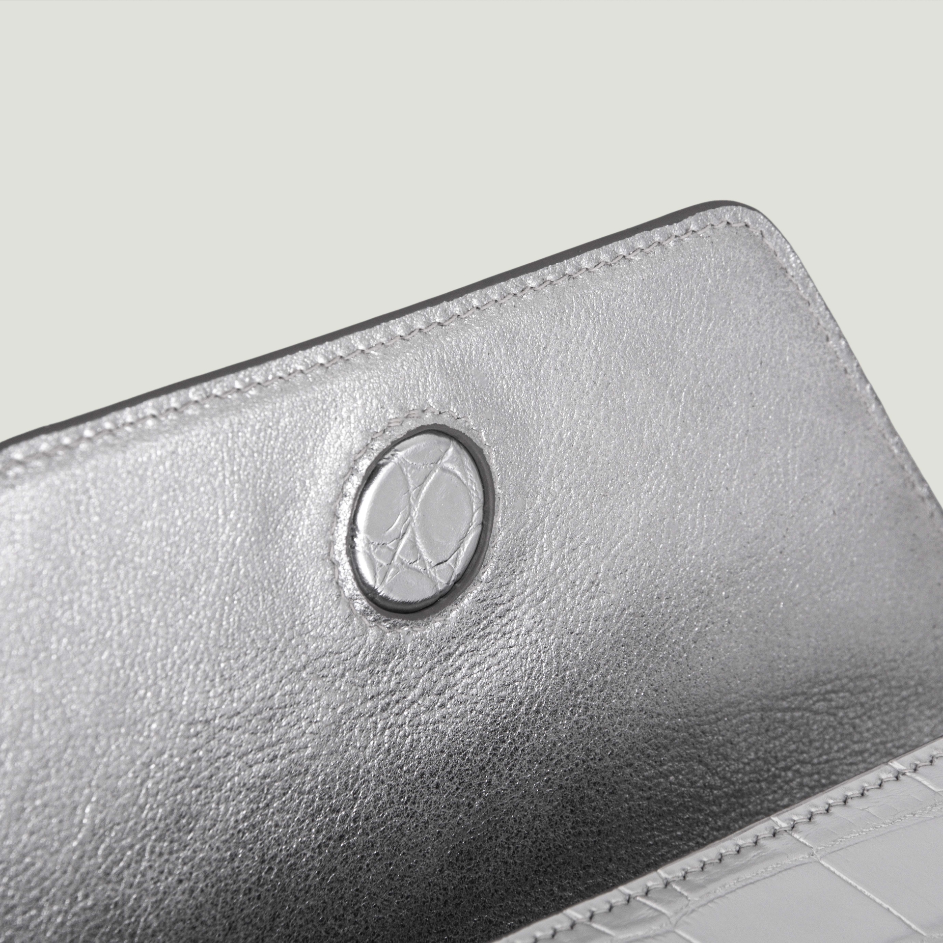 - Натуральная лаковая кожа серебряного цвета с фактурой кроко. Потрясающий зеркальный эффект