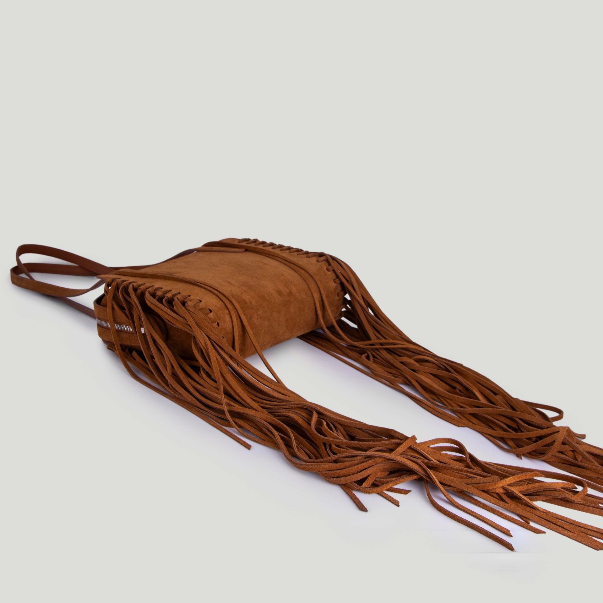 Сумка потрясающего удобства: легкая, компактный размер, молния, позволяющая максимально ее раскрыть, длинные ручки, чтобы носить ее на плече. Но самое главное в ней - это, конечно, бахрома, которая вручную бережно была продета в каждое отверстие на клиньях сумки.