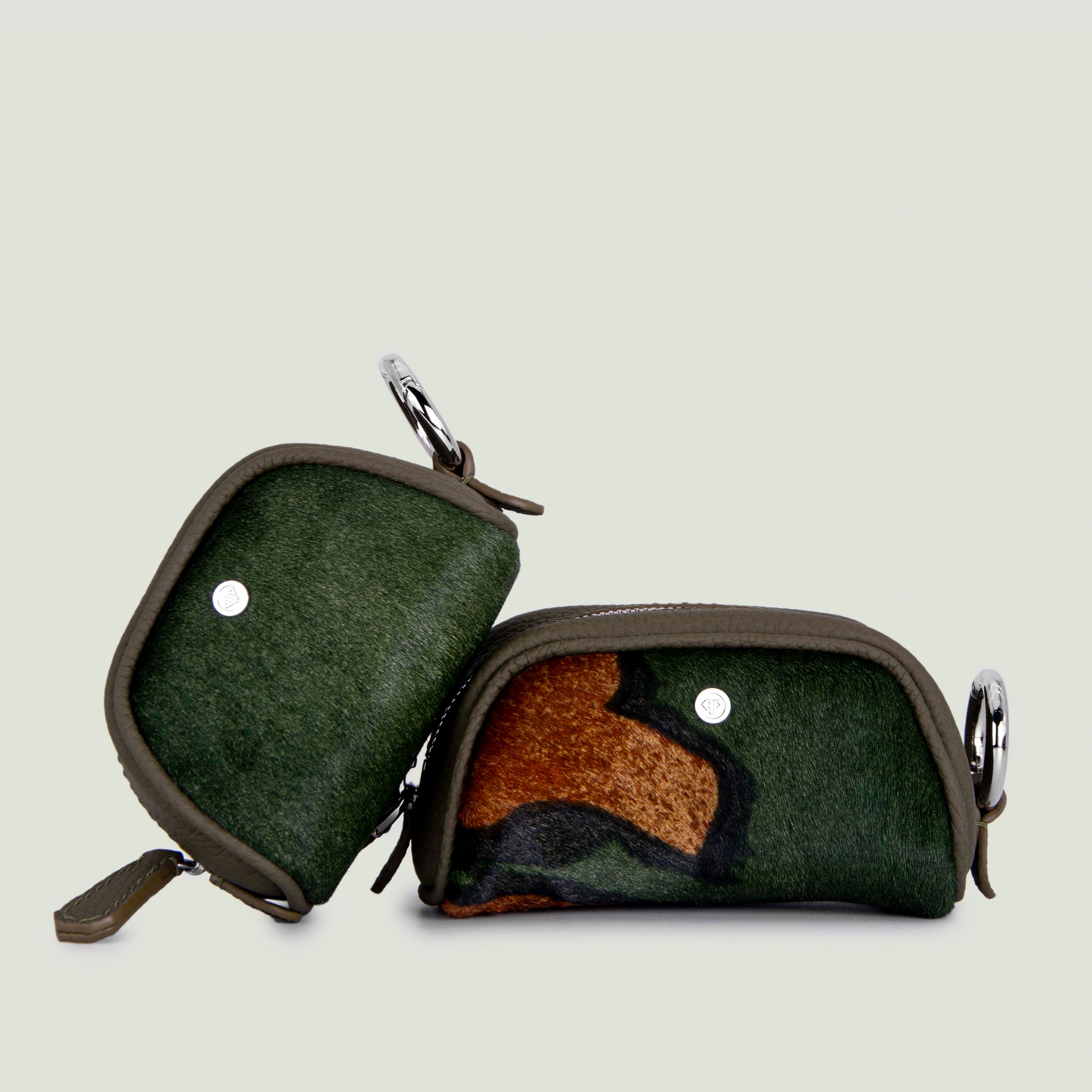 Cозданы из комбинации натуральной кожи и меха "пони" зеленого цвета с анималистичным принтом