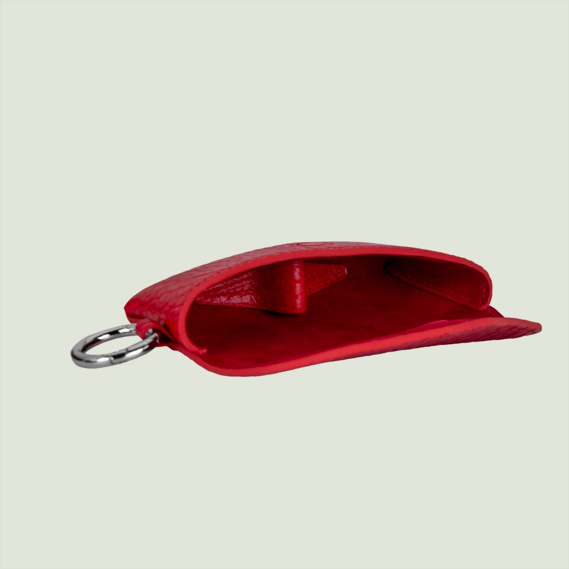 – Натуральная, очень фактурная, кожа красного цвета