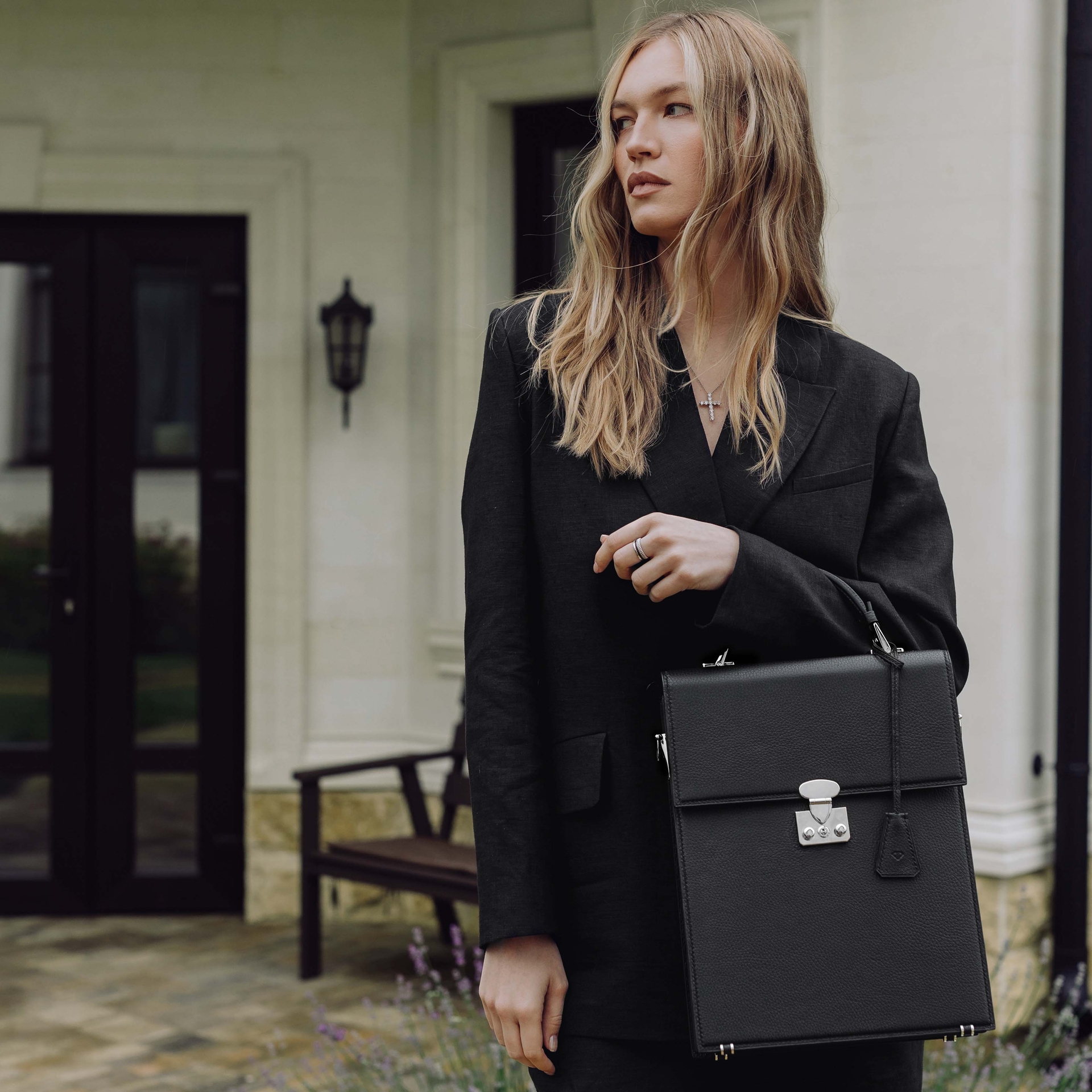 Вертикальный портфель – идеальный формат сумки для девушек и женщин, предпочитающих стиль “old money”, а также для работающих с документами дам.