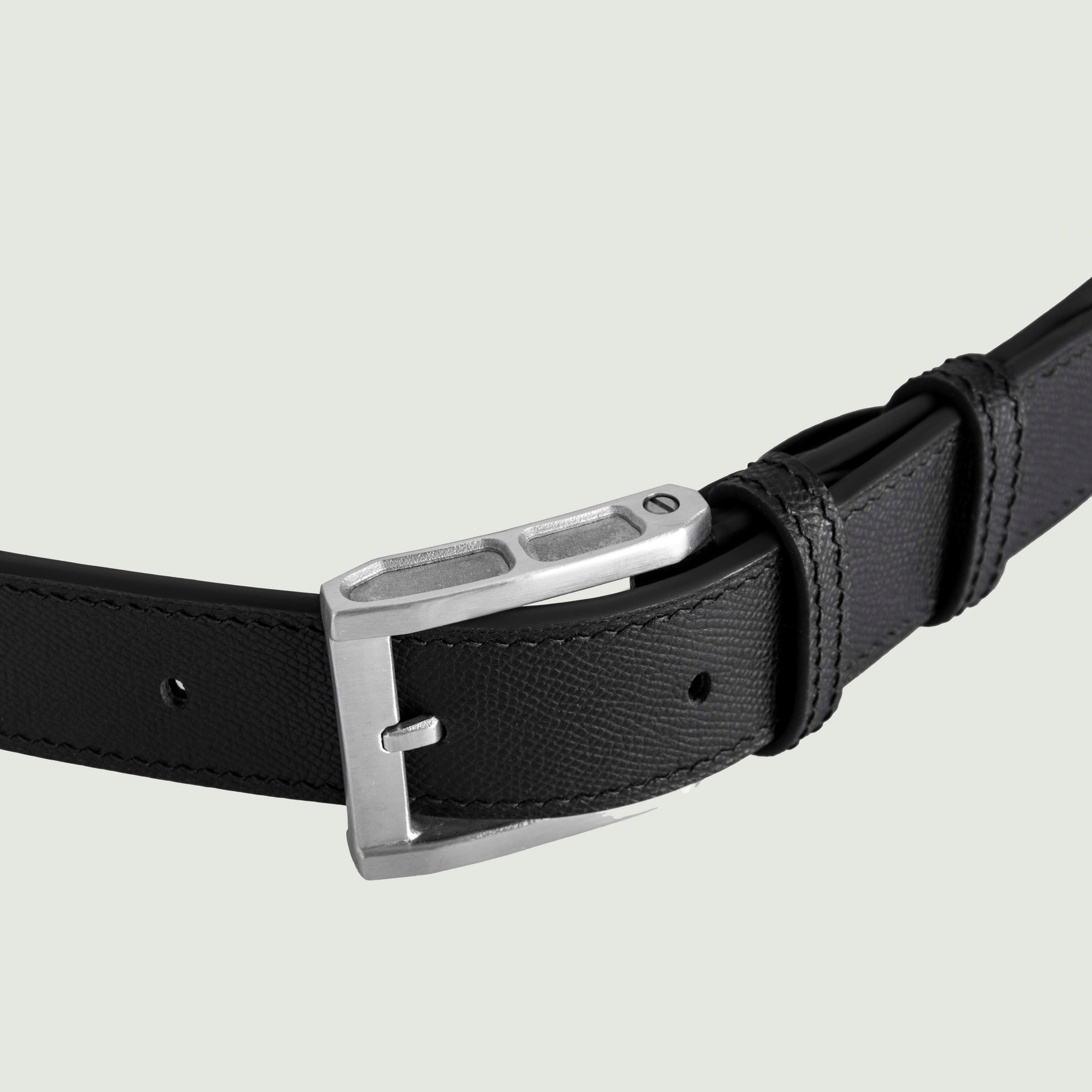 Титановая, брутальная пряжка серебряного цвета с матовым покрытием.