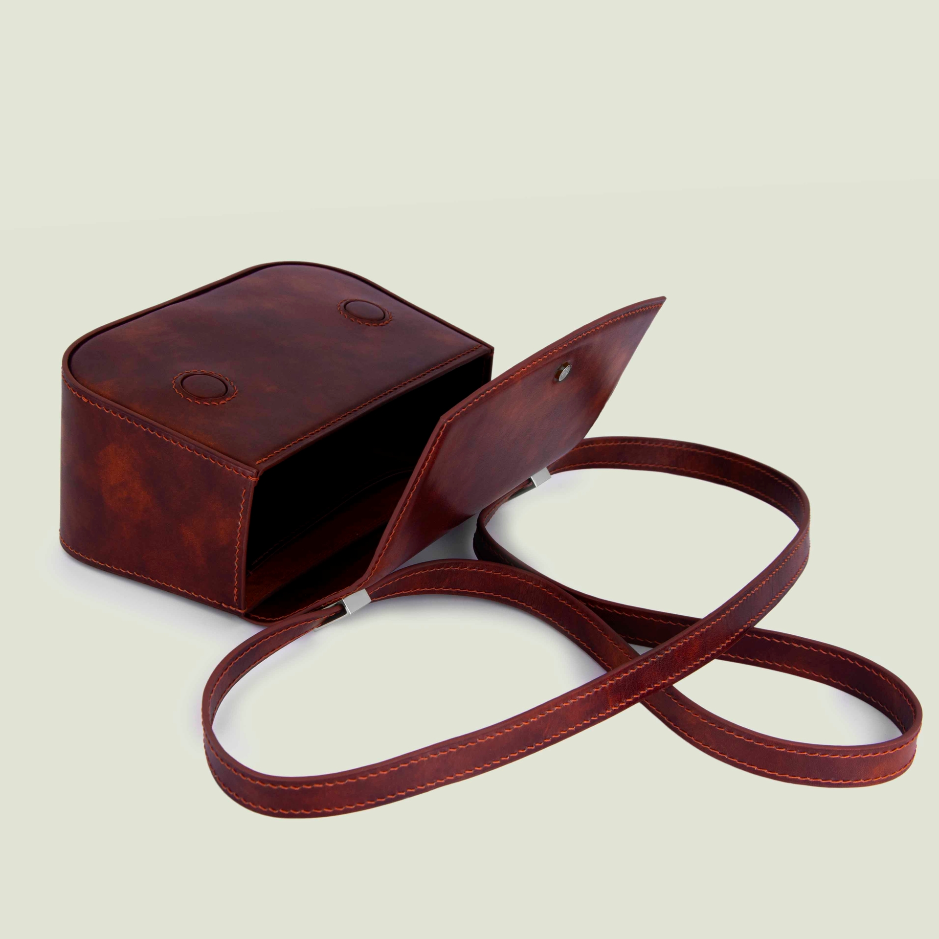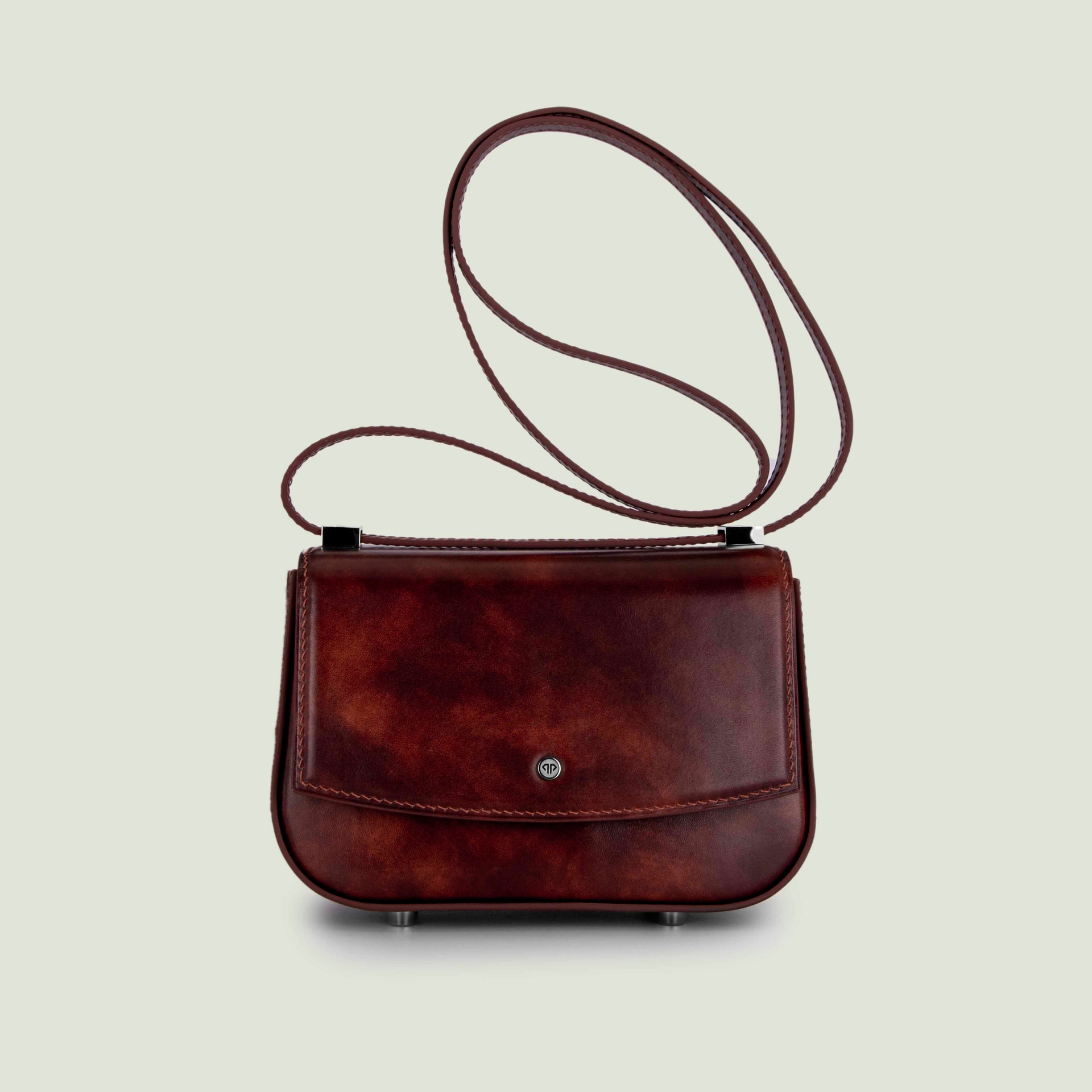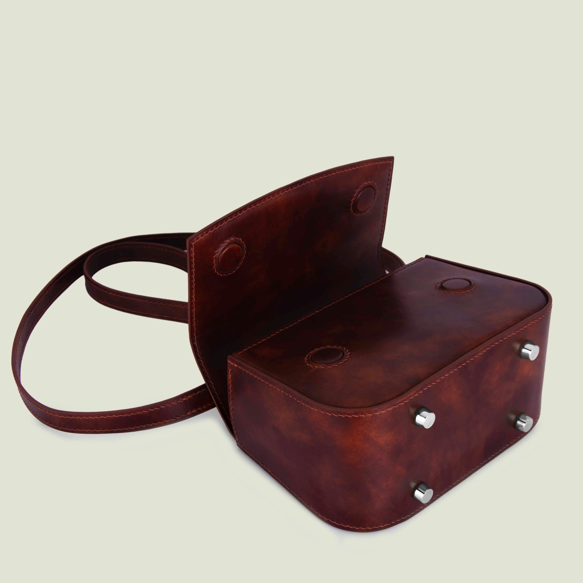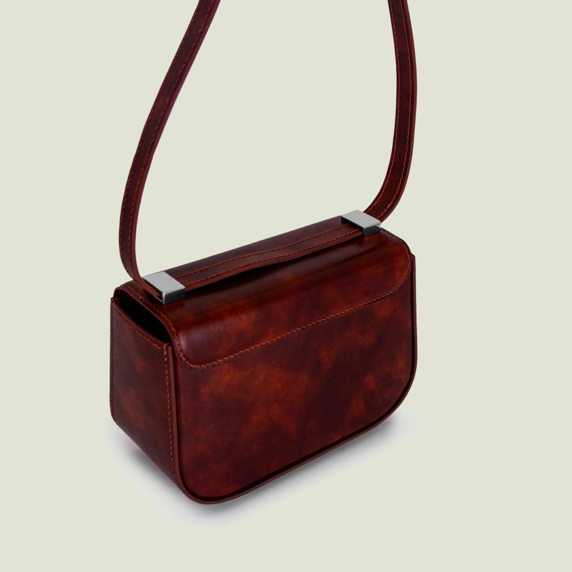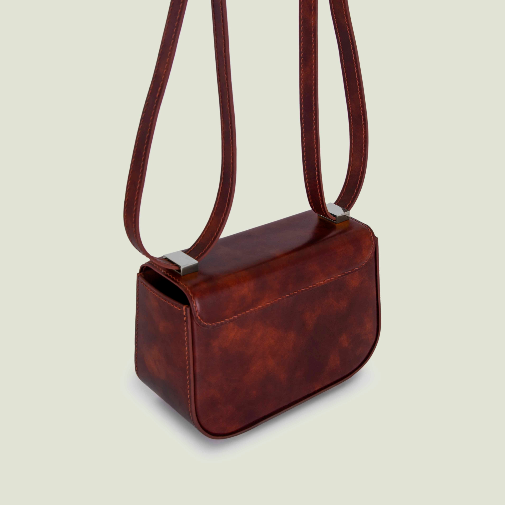 – Натуральная гладкая кожа необычной расцветки: коричневый с ржавыми размытостями