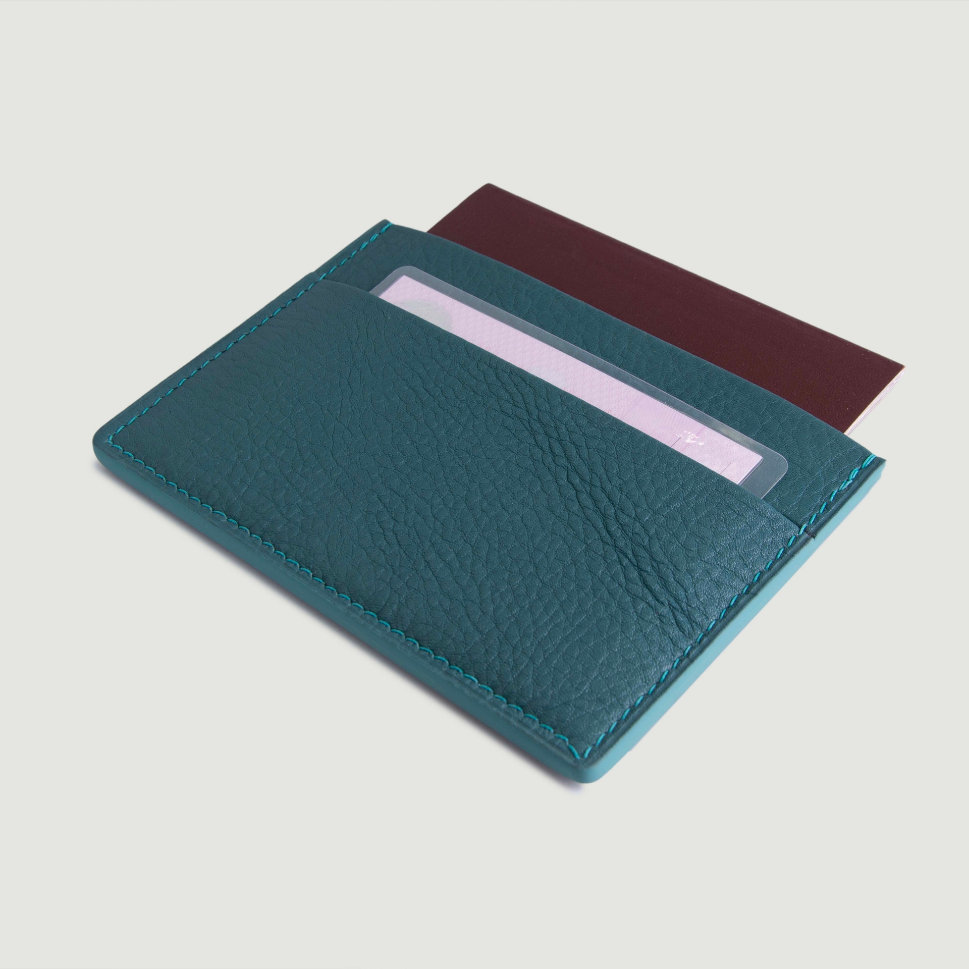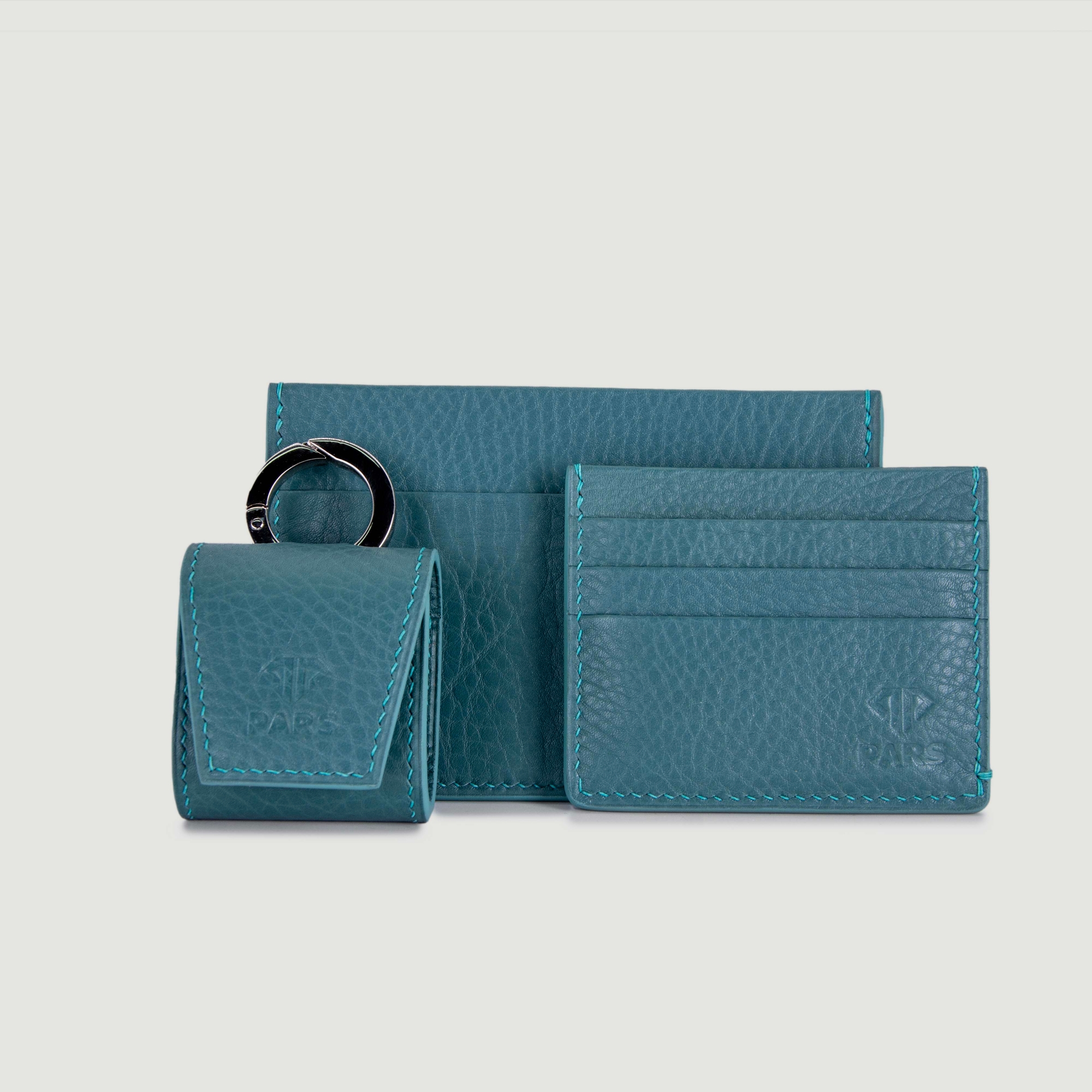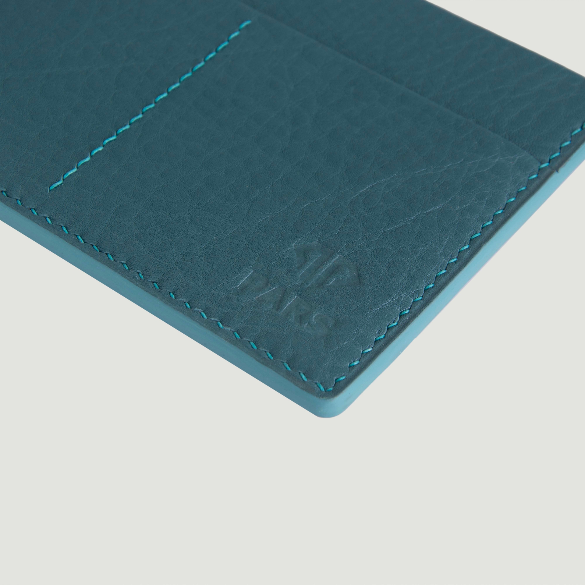 Натуральная мягкая кожа яркого бирюзового цвета.